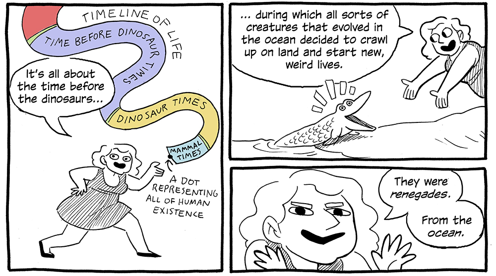 Sounds totally awesome, right?! The most exciting part? Abby Howard drew a hilarious exclusive comic for YAYOMG! readers, where she chats about the book, shares some facts about Paleozoic creatures, and dishes on the dinosaur she helped dig up in real life!