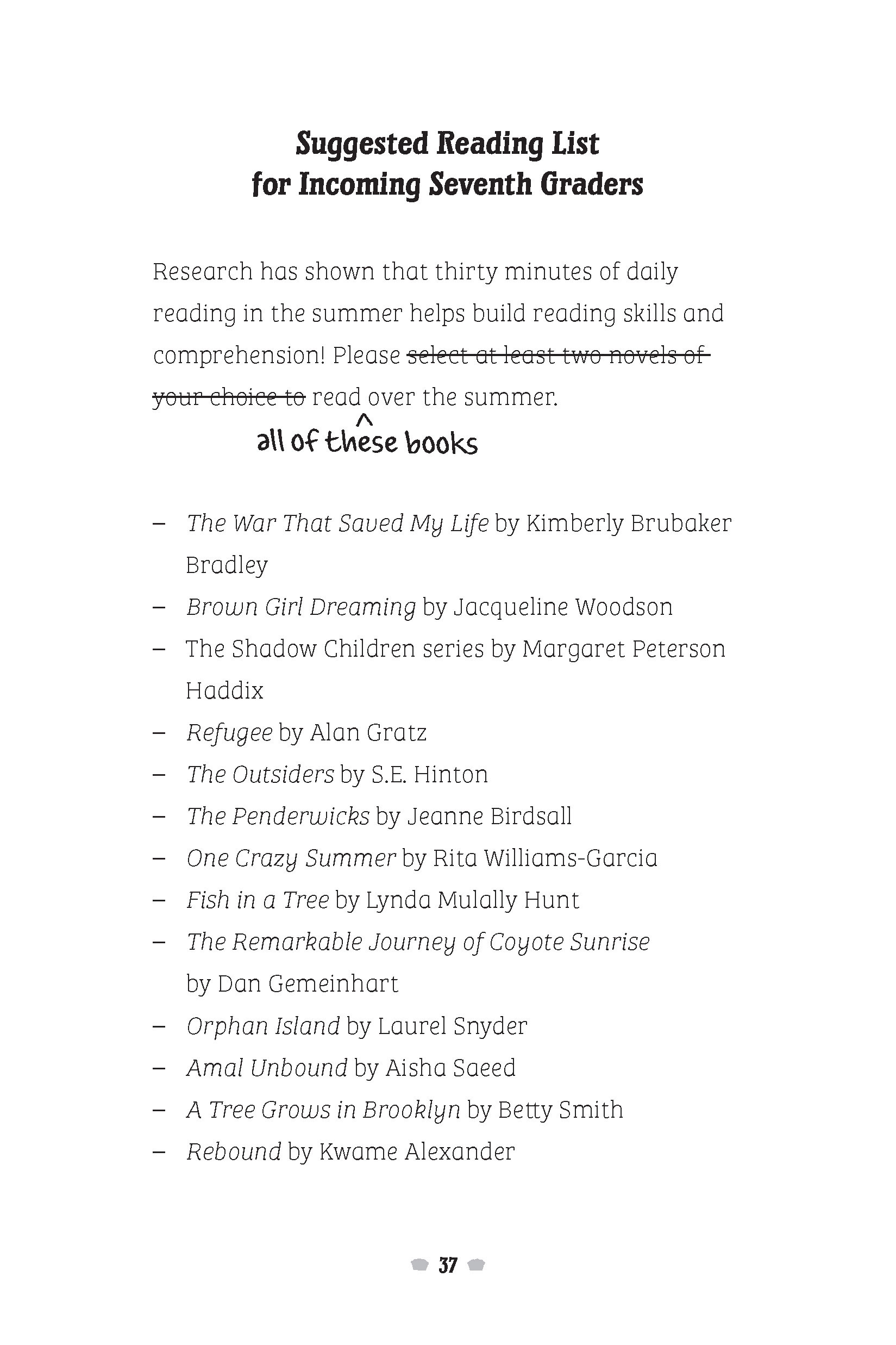 Seventh-grader Lucy’s personal trip goal is to read all the books on her school’s summer reading list—and there are a lot of them! I love to read, so I filled Lucy’s book list with some of my own personal favorites (I’ve read and loved all of these books!). Click here for the list, in case you need some ideas for what to read next!